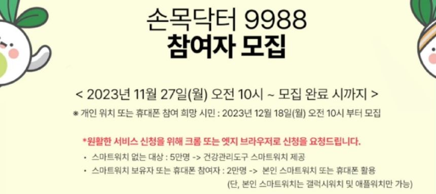 ①손목닥터 9988 서비스 신청 및 회원가입(2023년 8월 28일 오전 10시 이후 OPEN)
